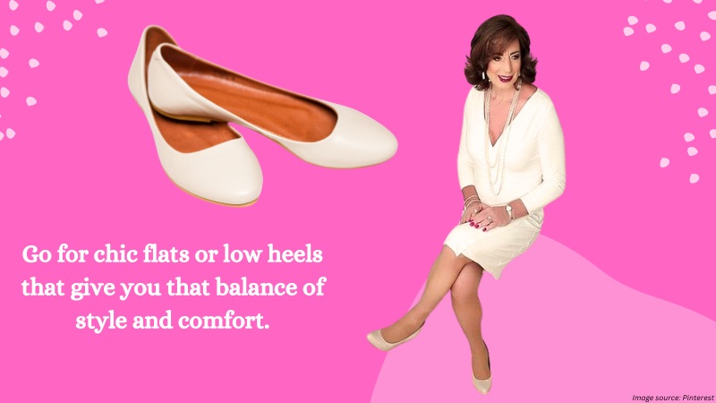 Of course, your kicks should be on point too. But since you’re not getting younger (and that is a blessing!), always prioritize your comfort. Go for chic flats or low heels that give you that balance of style and comfort. Patent leather or Charol shoes are also dapper!