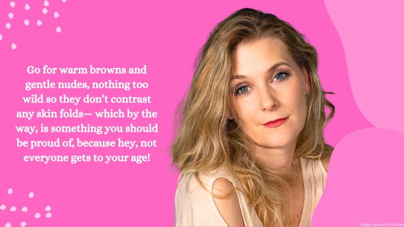 Like Old Hollywood babes, play up your eyes and lips. Bold, classic red lips are always in-fashion. Soft, neutral eyeshadows are also great. Go for warm browns and gentle nudes, nothing too wild so they don’t contrast any skin folds— which by the way, is something you should be proud of, because hey, not everyone gets to your age!