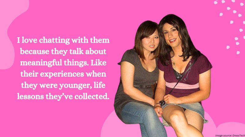 Most, if not all, of the mature crossdressers I’ve met, don’t speak about the latest makeup trend or fashion item. I love chatting with them because they talk about meaningful things. Like their experiences when they were younger, life lessons they’ve collected, and life tips— there are many things you can learn about life in general.