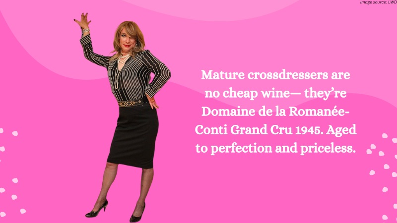 There’s just something magnetic about a man who has been around the block, knows himself inside and out, and doesn’t pretend to be anyone else. These men have this slick, effortless way they draw attention. Mature crossdressers are no cheap wine— they’re Domaine de la Romanée-Conti Grand Cru 1945. Aged to perfection and priceless.