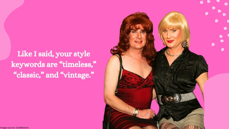 Younger crossdressers? They don’t have anything on you! You don’t have to crossdress with the most trendy things. Style-wise, you’ll want to aim for that timeless, sophisticated aura. Think of those classic pieces that’ll make your natural charm just pop. You’re all about that classy, evergreen look.