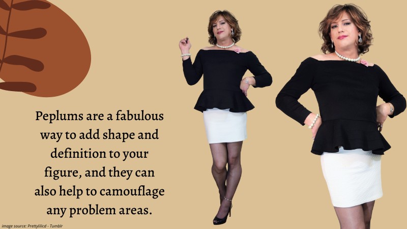 How do they work? Peplums are essentially a ruffle or overskirts that are attached to the waistline of a garment. They can be made from a variety of materials, including lace, chiffon, and even denim. Peplums can be found in dresses, skirts, blouses, and even jackets. When worn at the natural waistline, they help to create the illusion of a slimmer and trimmer torso.