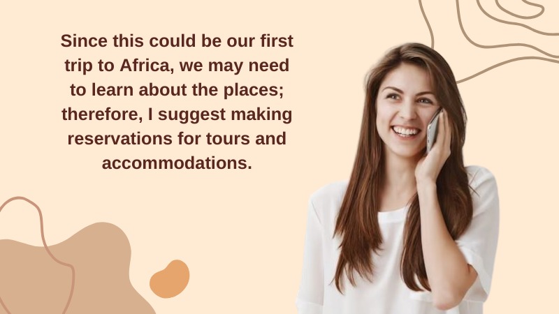 Since this could be our first trip to Africa, we may need to learn about the places; therefore, I suggest making reservations for tours and accommodations.