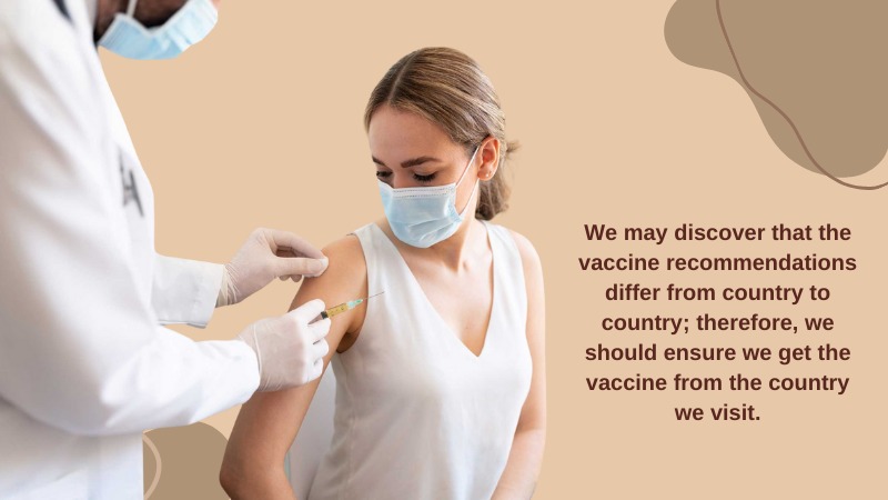 We may discover that the vaccine recommendations differ from country to country; therefore, we should ensure we get the vaccine from the country we visit.