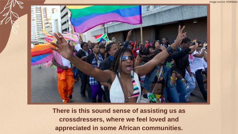 There is this sound sense of assisting us as crossdressers, where we feel loved and appreciated in some African communities.