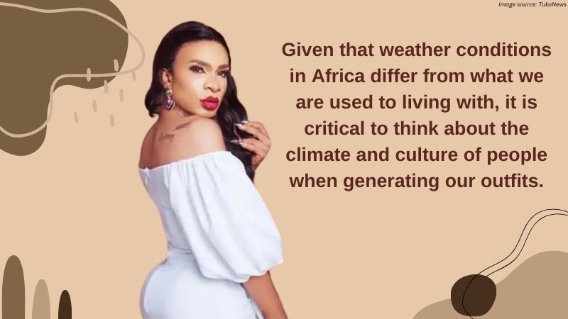 Given that weather conditions in Africa differ from what we are used to living with, it is critical to think about the climate and culture of people when generating our outfits.