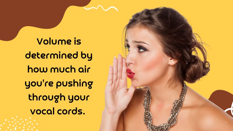 Volume – the loudness or softness of your voice – is determined by how much air you’re pushing through your vocal cords.