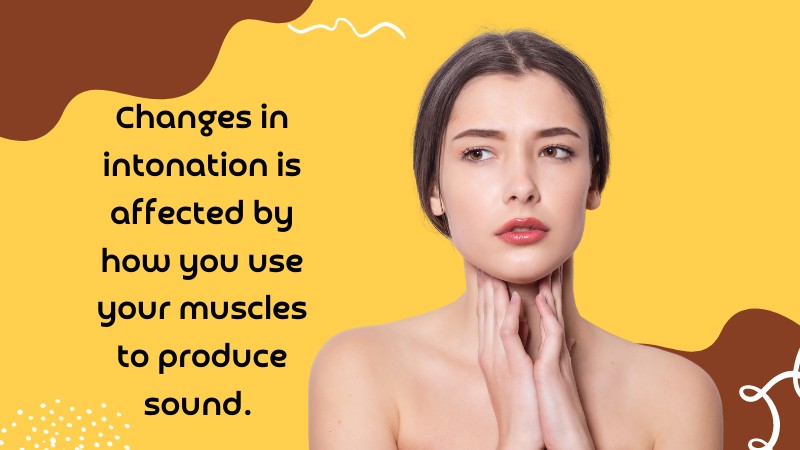 Changes in intonation – the sound of your voice is affected by how you use your muscles to produce sound.