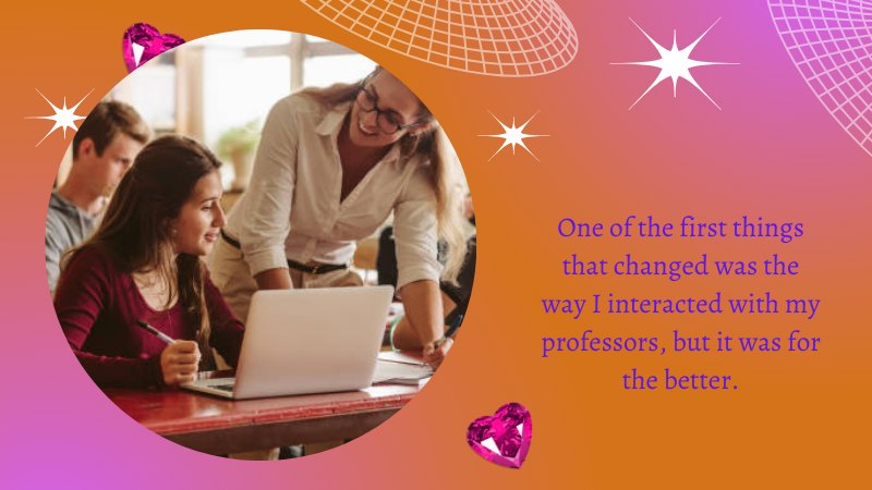 One of the first things that changed was the way I interacted with my professors, but it was for the better.