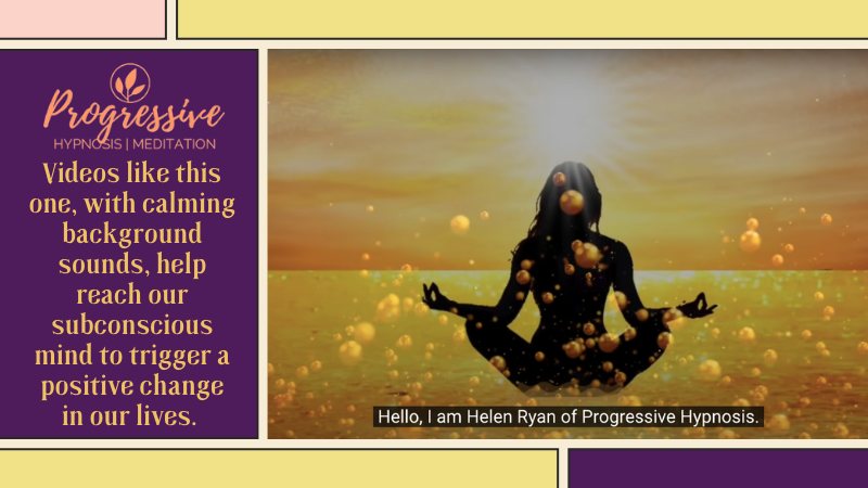 Videos like this one, with calming background sounds, help reach our subconscious mind to trigger a positive change in our lives. Exercising and losing weight through healthy habits in that case.