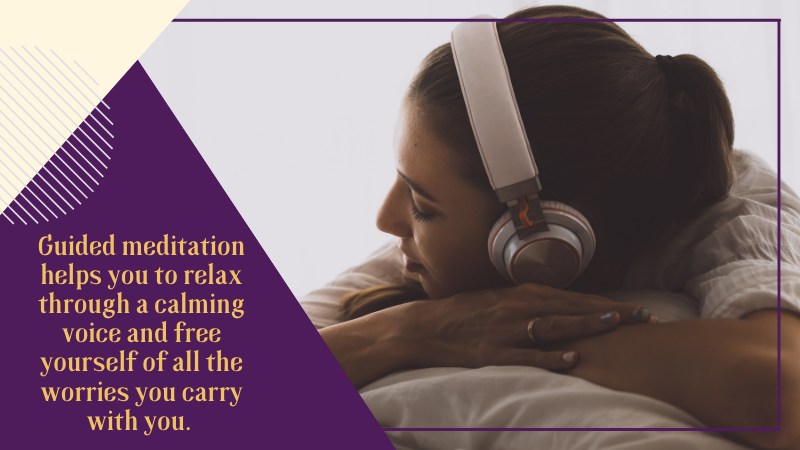 This type of guided meditation works similarly to the regular one. It helps you to relax through a calming voice and free yourself of all the worries you carry with you.