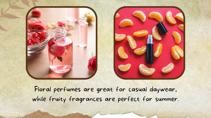 Floral perfumes are great for casual daywear, while fruity fragrances are perfect for summer.
