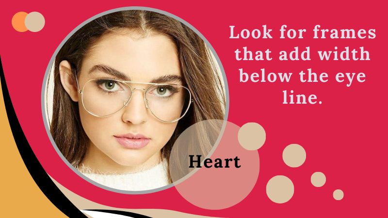 Try for wide glasses to balance your jaw while avoiding low temples.