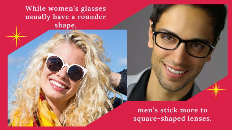 While women’s glasses usually have a rounder shape, men’s stick more to square-shaped lenses.