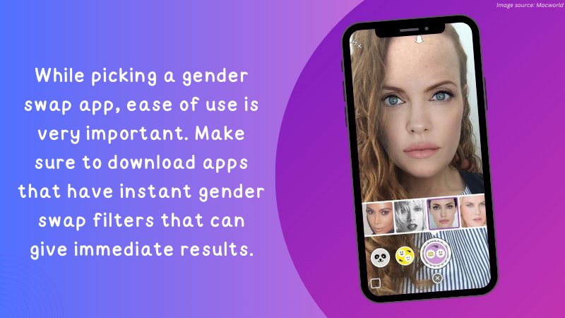 Make sure to download apps that have instant gender swap filters that can give immediate results.