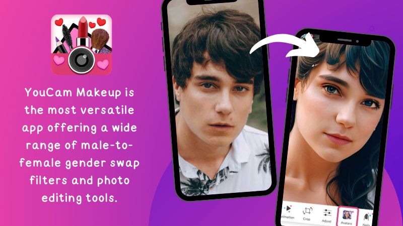 YouCam Makeup is the most versatile app offering a wide range of male-to-female gender swap filters and photo editing tools.