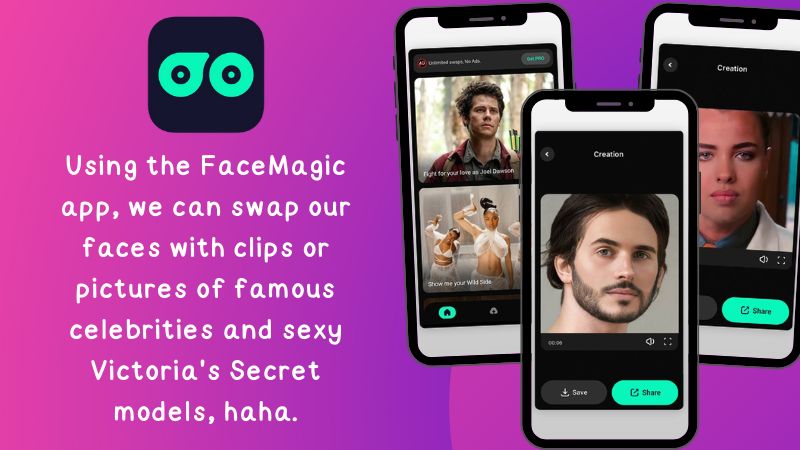 Using the FaceMagic app, we can swap our faces with clips or pictures of famous celebrities and sexy Victoria’s Secret models, haha.