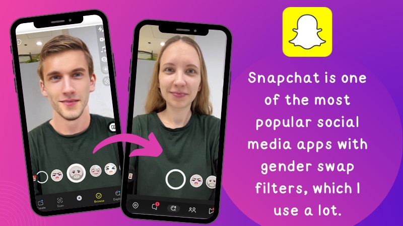 Snapchat is one of the most popular social media apps with gender swap filters, which I use a lot.