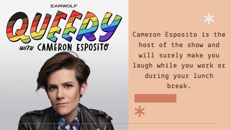 Cameron Esposito is the host of the show and will surely make you laugh while you work or during your lunch break.