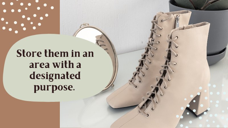 Shoes can get misplaced in the morning rush. To avoid this problem, store them all in the same location. This way, you’ll know exactly where to look when you need them and can quickly stash them away for when you want to put them back on.