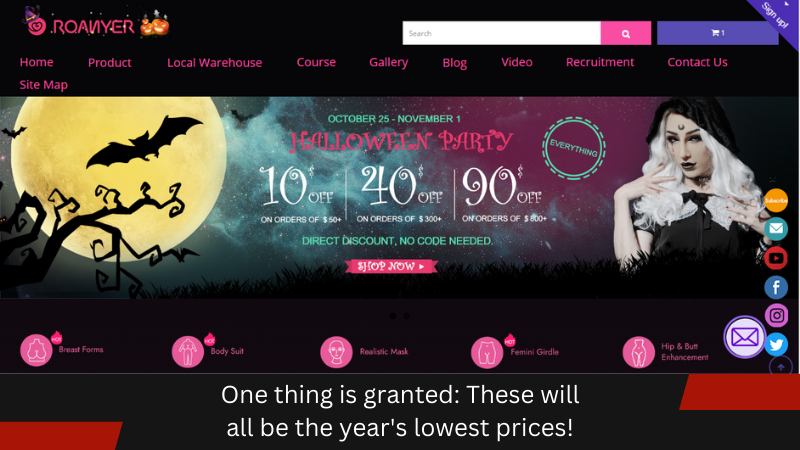 You’ll be able to get authentic Roanyer products with up to 70% off! Besides that, you’ll get a chance for unique discounts with our lucky draws. And every day, we’ll offer two hot sale products with up to 20% off. Some other deals will be available as well. It includes our best-selling H and G cup breast forms and butt-enhancing pants. We’ll offer the best deals in the market for crossdressers. The goal is to contemplate the needs of all our sisters!
