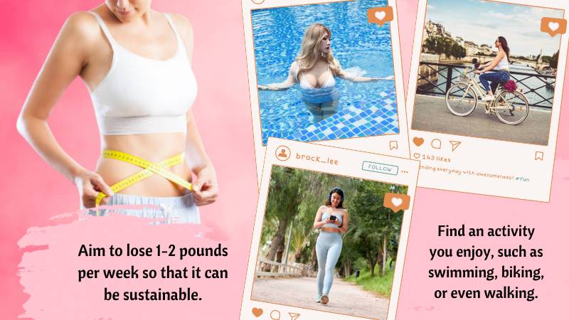 - Set a realistic goal. If you’re aiming to lose weight, don’t set an unrealistic goal, such as losing 10 pounds in a month. Slow and steady wins the race. Aim to lose 1-2 pounds per week so that it can be sustainable.