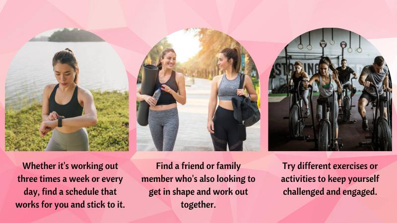 - Set a regular schedule. One of the best ways to ensure you stay on track with your exercise routine is to set a regular schedule. Whether it’s working out three times a week or every day, find a schedule that works for you and stick to it.