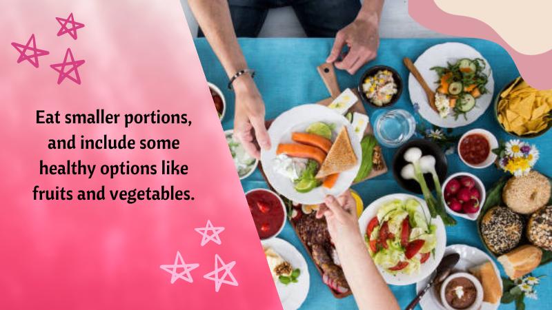 Don’t go overboard with the food. Yes, it’s tempting to stuff yourself with all the delicious holiday foods, but remember that moderation is key. Eat smaller portions, and include some healthy options like fruits and vegetables.