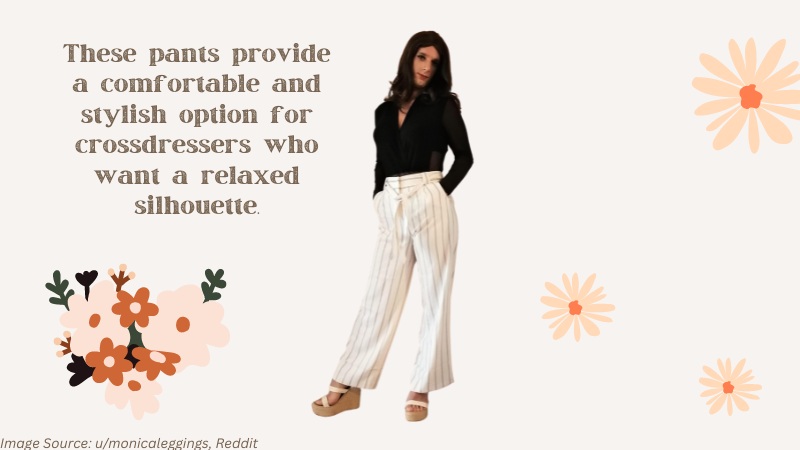 These pants provide a comfortable and stylish option for crossdressers who want a relaxed silhouette. Depending on the desired look, they can be paired with a fitted top or a loose-fitting tunic. Crossdressers can experiment with different shapes and sizes to find what fits their body type best and expresses their style. Some may prefer a more fitted look, while others prefer a looser fit. The beauty of boho chic fashion is that it allows for various styles and body types.