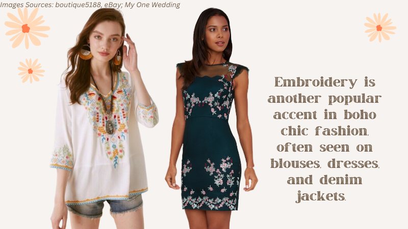 Embroidery is another popular accent in boho chic fashion, often seen on blouses, dresses, and denim jackets. This intricate detailing adds a touch of sophistication and elegance to any outfit while maintaining the relaxed and effortless vibe of the bohemian style. Beaded jewelry is also a favorite among boho chic enthusiasts. Its colorful and intricate designs add a pop of color to any outfit. These pieces can range from simple beaded bracelets to elaborate statement necklaces, making it easy to find a style that suits any personal taste.