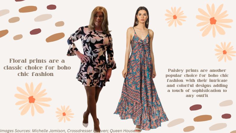 Floral prints are a classic choice for boho chic fashion. Their soft and romantic designs add a touch of femininity to any outfit. These prints can be found on everything from maxi dresses to flowy blouses. They’re perfect for creating a whimsical and dreamy look. Paisley prints are another popular choice for boho chic fashion, with their intricate and colorful designs adding a touch of sophistication to any outfit.
