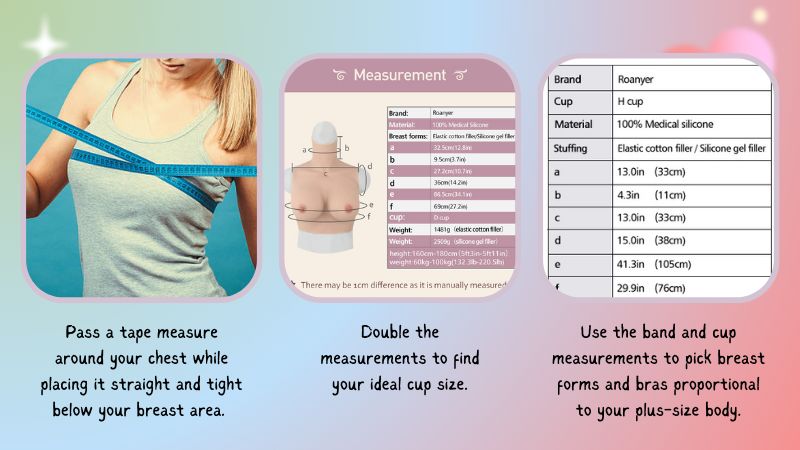 Use the band and cup measurements to pick a breast form and bra proportional to your plus-size body.
