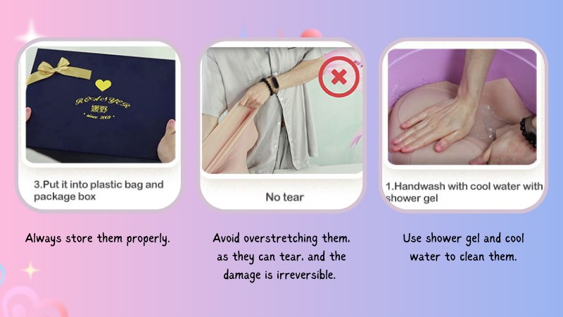 Instead, use shower gel and cool water to clean them. Avoid direct sunlight while drying them.