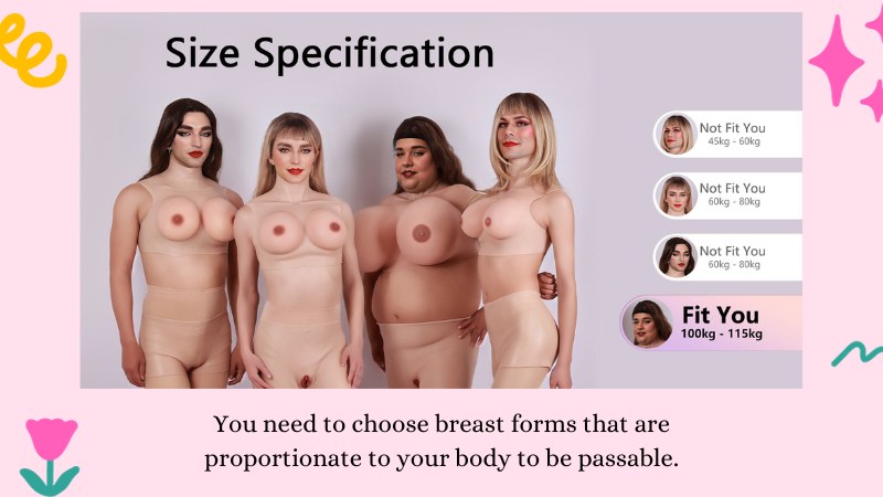 You need to choose breast forms that are proportionate to your body to be passable.