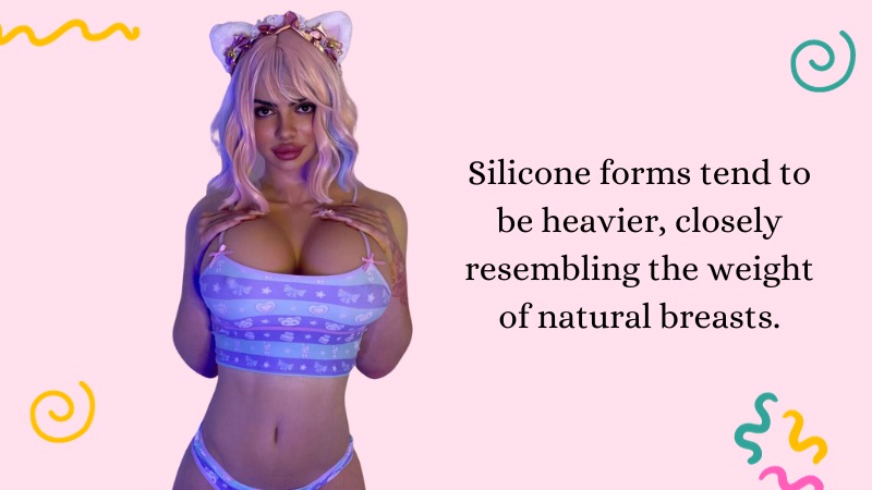 Silicone forms tend to be heavier, closely resembling the weight of natural breasts.