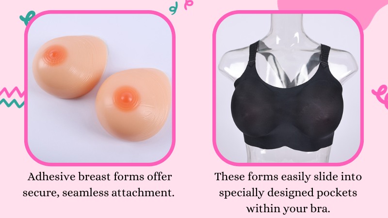 Breast forms can be attached using various methods, each with distinct advantages.