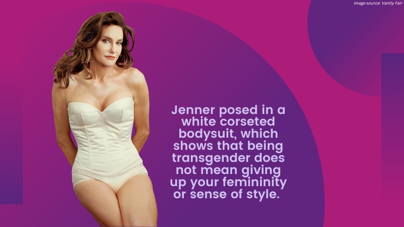 - It also communicates that we can be beautiful and sexy. This is important because often, we are seen as unattractive or damaged goods. Jenner posed in a white corseted bodysuit, which shows that being transgender does not mean giving up your femininity or sense of style. This inspires transgender people worldwide who often feel we must give up our true selves to conform to society’s standards.