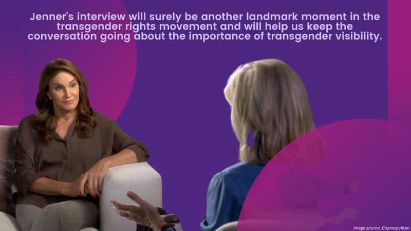 - The Vanity Fair cover is likely to help continue the conversation about transgender rights and visibility. This is important because the more people talk about transgender issues, the more likely it is that real change will happen. Jenner’s interview will surely be another landmark moment in the transgender rights movement and will help us keep the conversation going about the importance of transgender visibility.