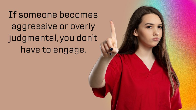 If someone becomes aggressive or overly judgmental, you don’t have to engage. Keep your boundaries firm and protect your peace.