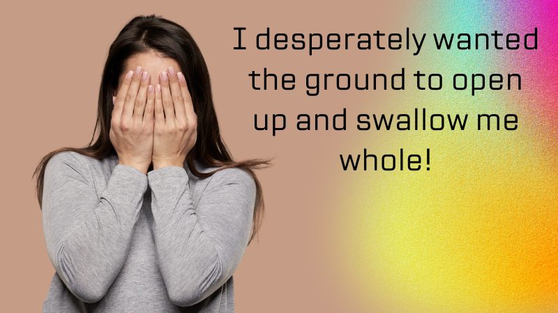 My brain went blank. Should I run? Hide? Laugh it off? I desperately wanted the ground to open up and swallow me whole!