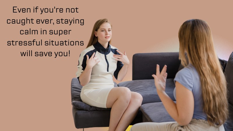 So, the first thing to master? Staying calm. Even if you’re never caught, staying calm in extremely stressful situations will save you!