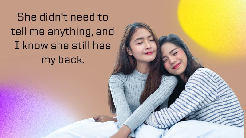 She didn’t say much after that. But she hugged me no less tight. She didn’t need to tell me anything, and I know she still has my back.