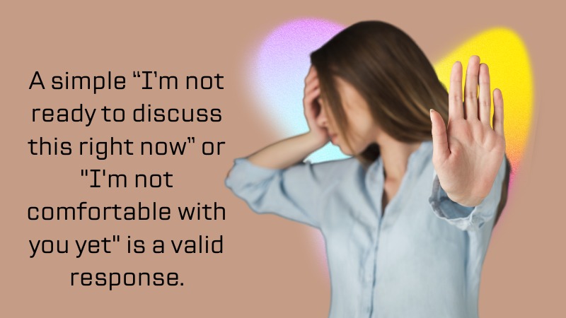 If you’re not comfortable talking about it, then don’t. A simple “I’m not ready to discuss this right now” or “I’m not comfortable with you yet” is a valid response.