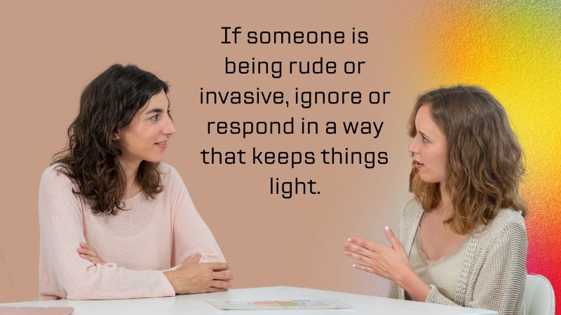 If someone is being rude or intrusive, ignore or respond in a way that keeps the situation light. For example:
