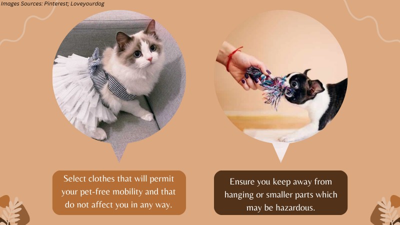 Choose clothing items that will perfectly suit your pet. Tight or loose clothes may become very troublesome or even unsafe.