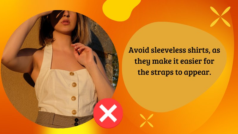 With the bra cups out of the way, it’s time to account for shoulder straps. They are easy to conceal if you pay attention to them, but they might appear in unexpected places if you are not careful. If you’ve been following my tips so far, you won’t have any problem with shoulder straps showing through or making a volume in your clothes. You need, however, to pay attention to openings such as your collar, to where the bra’s shoulder straps could slip. With that in mind, I also recommend you avoid sleeveless shirts, as they make it easier for the straps to appear.