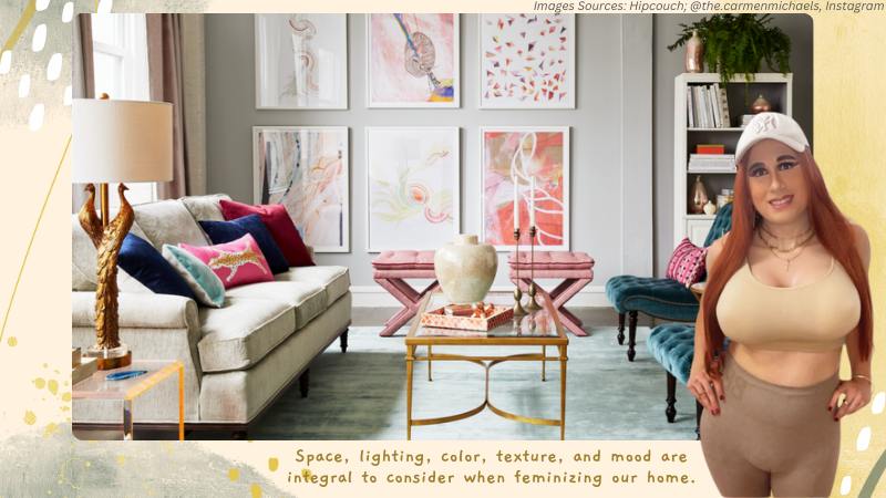 Everyone wants a happy home. And for Transwomen, feminizing the home is crucial. Feminizing our home means being playful with color, textures, lines, and clothing. We inject our creativity into our home by experimenting with a home’s warm embrace.