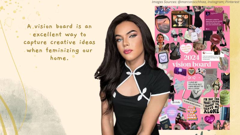 A vision board is an excellent way to capture creative ideas when feminizing our home.