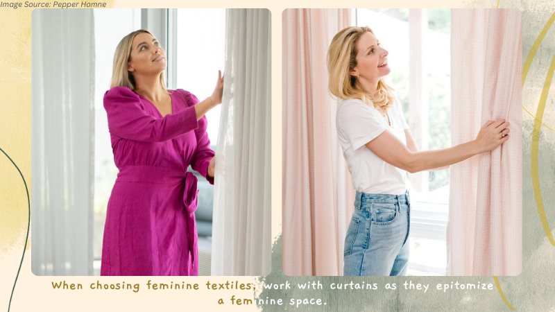 Choose curtain materials such as velvet, silk, and linen to ooze the feminine textile in our room. These are soft to the eyes and for the touch.
