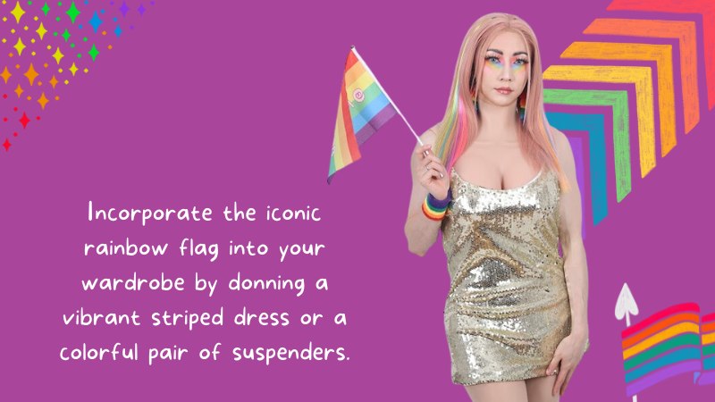 Incorporate the iconic rainbow flag into your wardrobe by donning a vibrant striped dress or a colorful pair of suspenders.